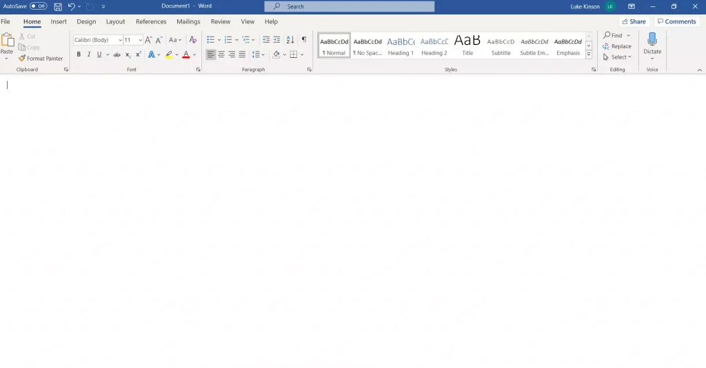 - Boş bir Word sekmesi böyle görünür.