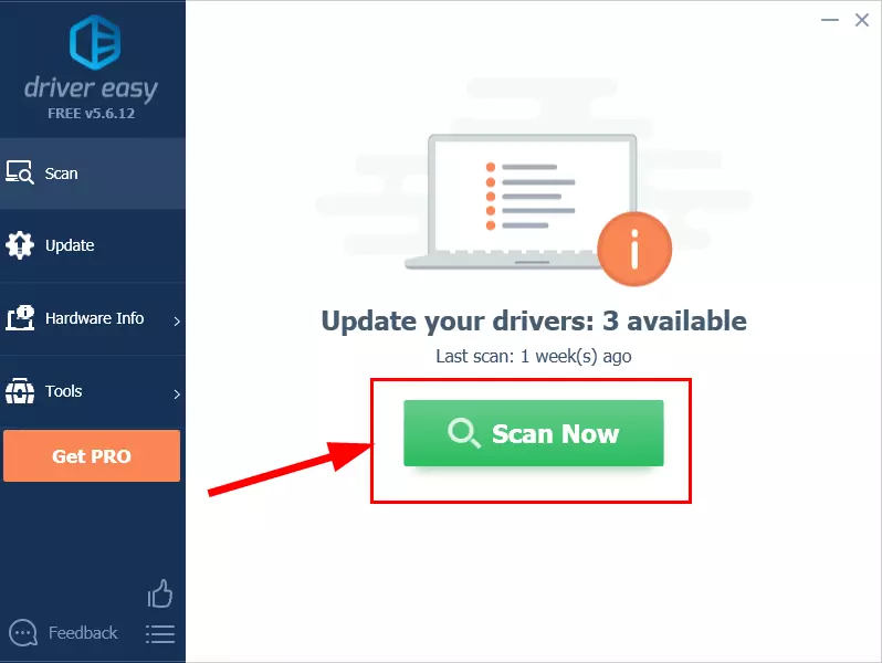 - Driver Easy’yi çalıştırın ve Şimdi Tara (Scan Now) düğmesine tıklayın. Driver Easy daha sonra bilgisayarınızı tarayıp sorunlu sürücüleri algılayacaktır.